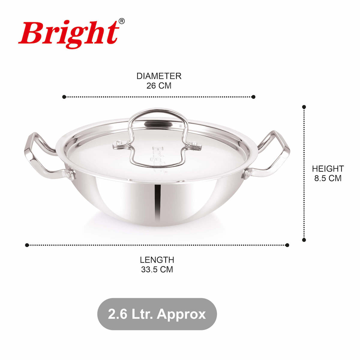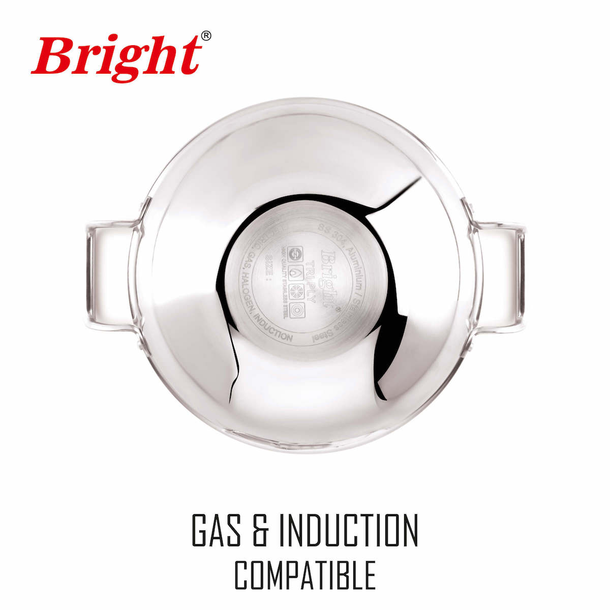Tri-Ply Cookware is made of 3 Layered blend of Stainless Steel, Aluminium and Stainless Steel. The cooking surface is made of Food grade-304 Stainless Steel , which is non-reactive and is naturally low stick making your cooking and cleaning hassle free.