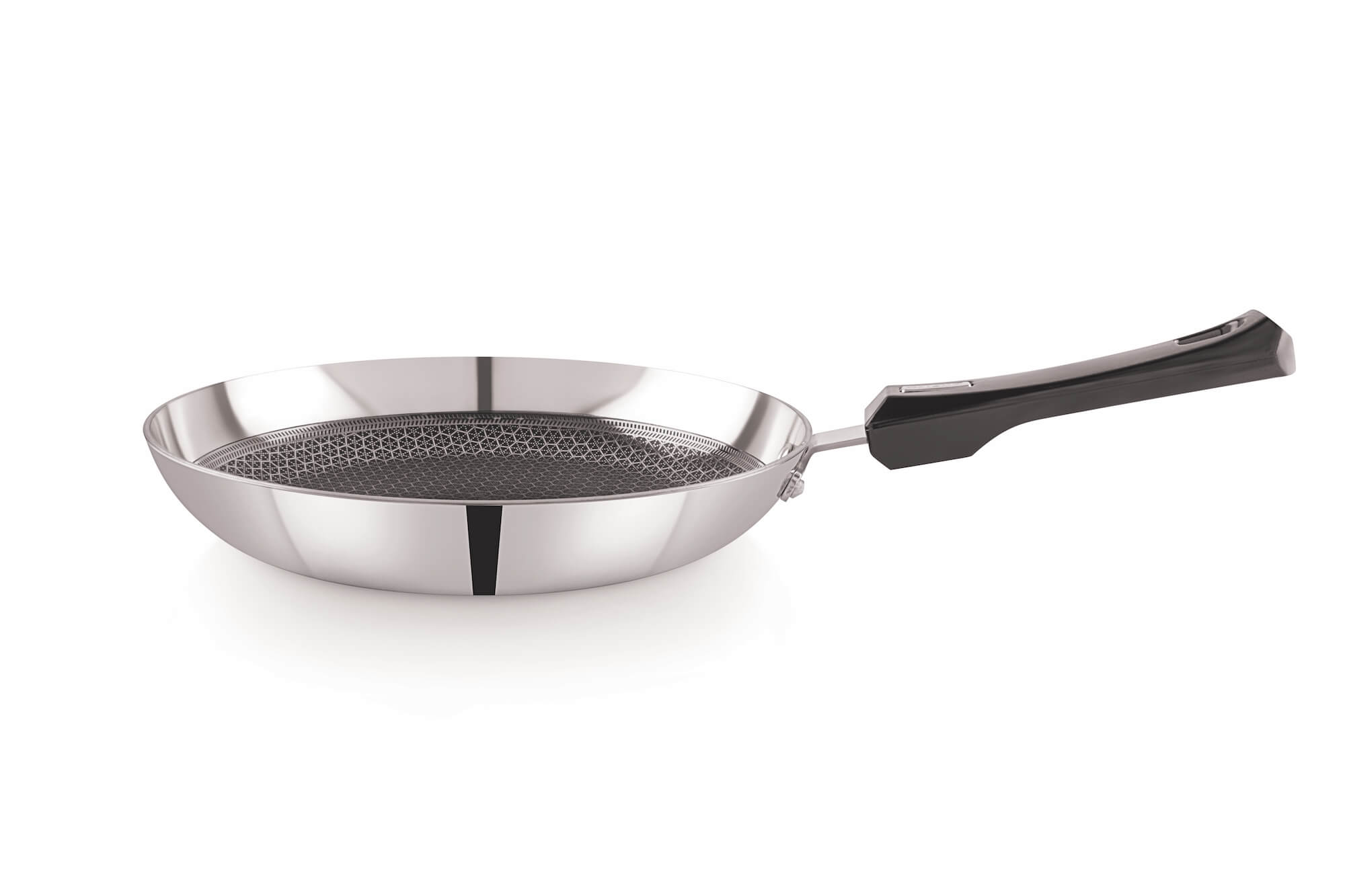Tri-Ply Cookware is made of 3 Layered blend of Stainless Steel, Aluminium and Stainless Steel. The cooking surface is made of Food grade-304 Stainless Steel , which is non-reactive and is naturally low stick making your cooking and cleaning hassle free.